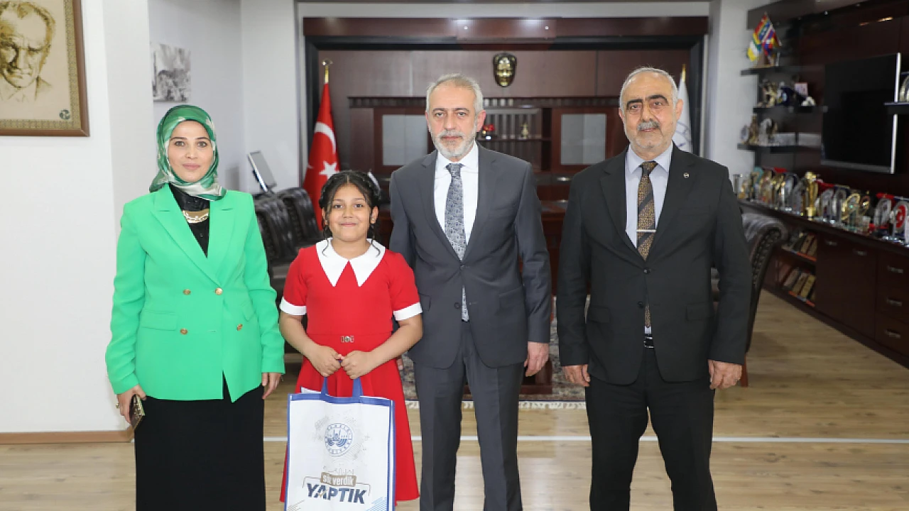 Elazığ’da 23 Nisan Ulusal Egemenlik ve Çocuk Bayramı kutlamaları coşku ile gerçekleşirken, Elazığ Belediye Başkan Vekili Veysi Toptaş, Cumhuriyet İlkokulu 3/B sınıfı öğrencisi Fazilet Zehra Birici'yi Başkanlık Makamı’nda ağırladı.