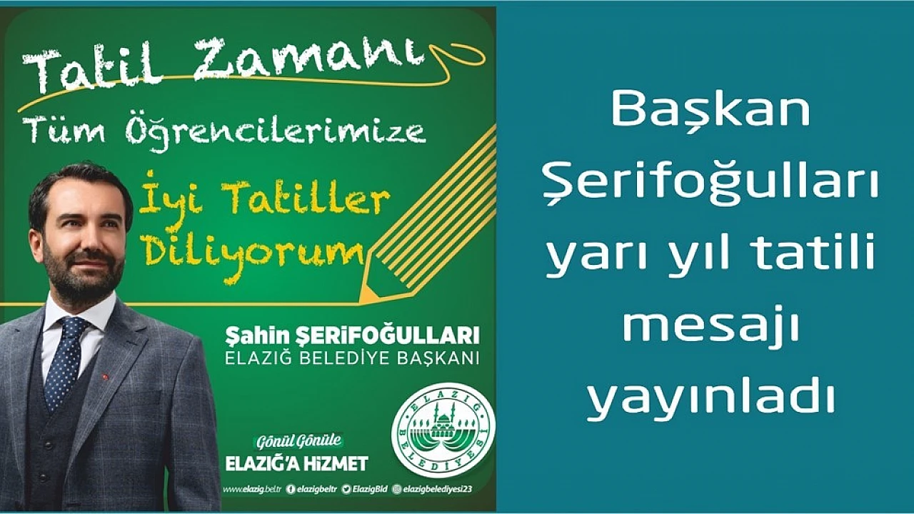 Elazığ Belediye Başkanı Şahin Şerifoğulları ilk ve orta dereceli okullarda başlayan yarıyıl tatili nedeniyle bir mesaj yayımladı.