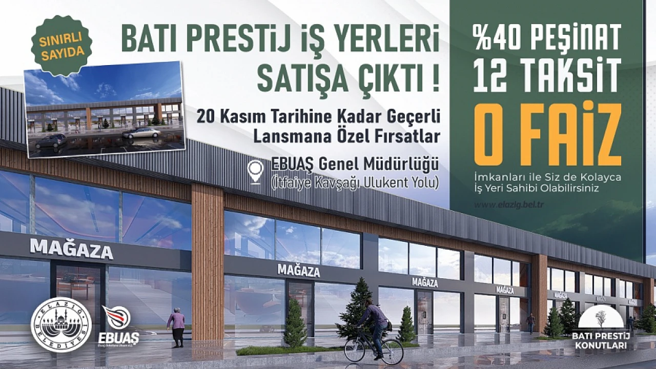 Yeni yapılacak olan 800 yataklı Fırat Üniversitesi Hastanesi’nin karşısında yer alan ve 115 m² ile 400 m² arasında değişen iş yerlerine sahip olmak için vatandaşlar, İtfaiye Kavşağı Ulukent yolu üzerinde bulunan EBUAŞ Genel Müdürlüğü’ne şahsen müracaat edebilecek.