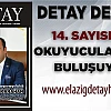 Aylık haber aktüel dergisi Detay, 14. sayısıyla okuyucularıyla buluşuyor. Derginin Eylül sayısının kapağında Elazığ Tarım İl Müdürü Turan Karahan ile güzel bir söyleşi gerçekleştirilirken devam sayfalarında ise şehrin bir aylık gündemi ele alındı.