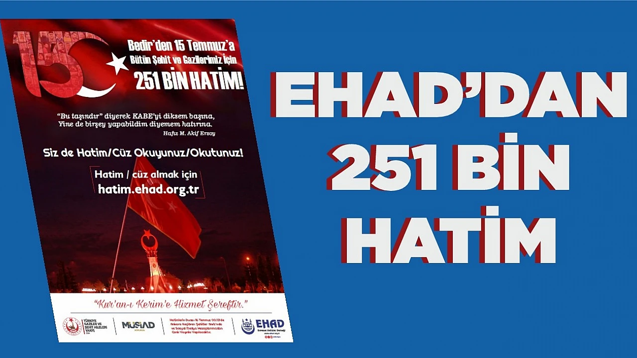 Evrensel Hafızlar Derneği (EHAD), Türkiye Gaziler ve Şehit Aileleri Vakfı ile Müstakil Sanayici ve İşadamları Derneği (MÜSİAD) Ankara Şubesi, 15 Temmuz şehitleri ve gazileri için 251 bin hatim kampanyası başlattı.
