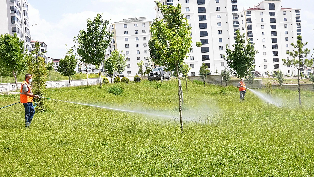 Öte yandan ekipler, kent genelindeki yeşil alanlarda ve ağaçlarda böcek ile üvez zararlısına karşı ilaçlama çalışmaları yürütüyor.