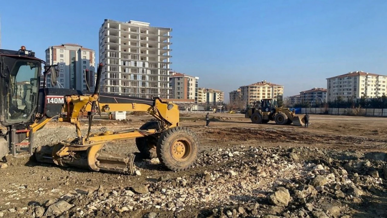 Yeşilyurt ilçesinde AFAD öncülüğünde kurulacak olan konteyner kent çalışmalarında Elazığ Belediyesi ekipleri de destek sunuyor.