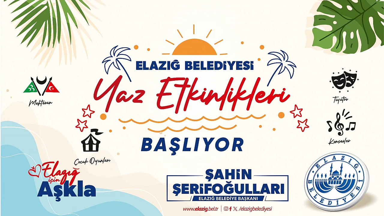 Elazığ Belediyesi'nin geleneksel hale getirdiği 'Yaz Etkinlikleri' başlıyor. Sosyal belediyecilik anlayışıyla çalışmalarını sürdüren Elazığ Belediyesi, kültürel değerlerin yaşatılması adına geleneksel hale getirdiği 'Yaz Etkinlikleri' ile her yaştan vatandaşa yaz aylarında keyifli ve unutulmaz anlar yaşatmaya bu yıl da devam edecek.