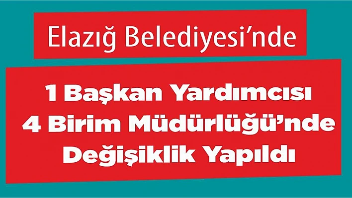 Elazığ Belediyesi yönetim kadrosunda 19.03.2020 tarihi itibariyle bir Başkan Yardımcılığı ve 4 birim müdürlüğü görevinde değişiklik yapıldı.