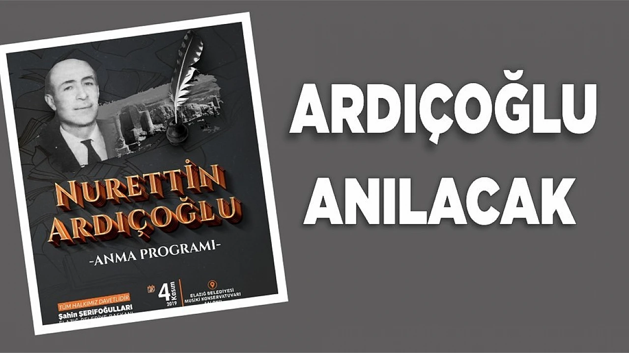 Elazığ Belediyesi Basın-Yayın ve Halkla İlişkiler Müdürlüğü’nden yapılan açıklamada, “Şehrimizin yetiştirdiği çok değerli isimlerden Nurettin Ardıçoğlu’nu anma programına tüm halkımız davetlidir.” denildi.
