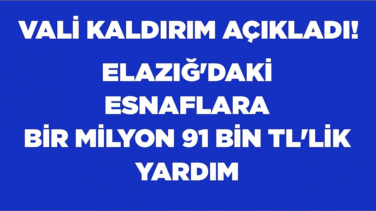 Konuyla ilgili açıklama yapan Elazığ Valisi Kaldırım, “Esnafımıza Destek Olmaya Devam Ediyoruz... İlimiz genelinde, Koronavirüs salgını nedeniyle işyeri kapanan 1091 esnafımıza Valiliğimizce, her esnafımıza 1000 TL olmak üzere toplam 1 milyon 91 bin TL yardım yapılmıştır. Esnafımıza desteklerimiz devam edecektir” dedi.