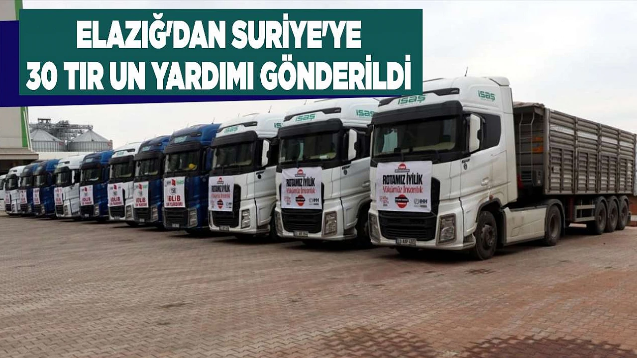 Un yüklü yardım tırları "Rotamız İyilik, Yükümüz İnsanlık" sloganıyla yapılan duaların ardından Suriye'nin iç bölgelerine ulaştırılmak üzere konvoy halinde Elazığ Organize Sanayi Bölgesi'nden yola çıkarıldı. İnsani Yardım Derneği Başkanı Metin Kılıç, Suriye'ye hayırseverlerin desteğiyle 30 tır un gönderdiklerini söyledi.