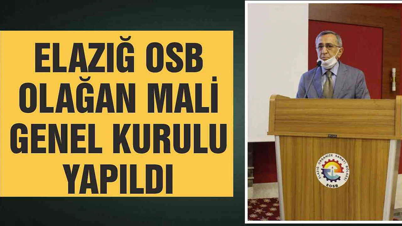 Elazığ OSB Olağan Mali Genel Kurul Yapıldı. Yapılan Genel Kurula Bakanlık Temsilcileri, OSB Yönetimi ve Sanayiciler katıldı. Olağan Mali Genel Kurul Başkanlık divanı oluşturulması ile başladı. Daha Sonra saygı duruşu yapıldı, İstiklal Marşı okundu.