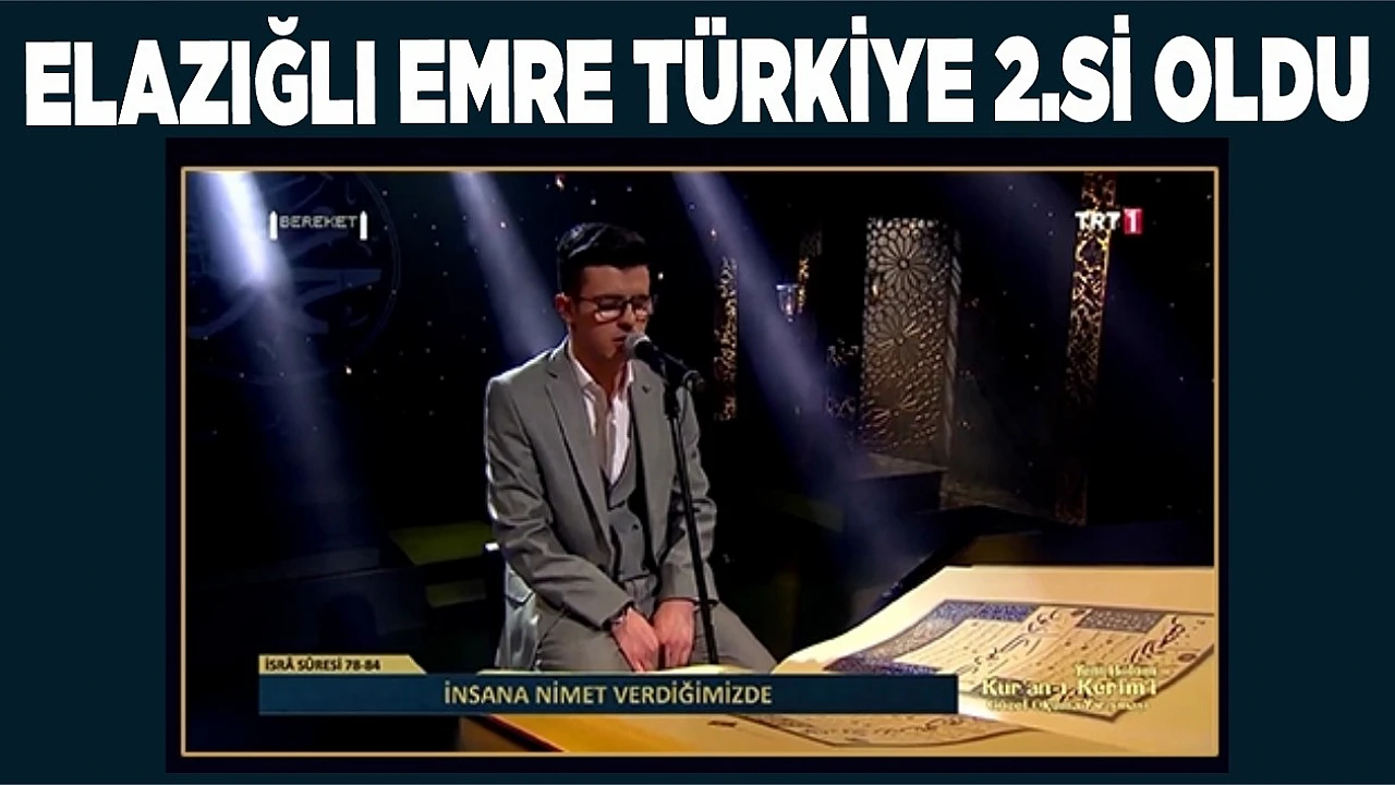 TRT 1 ekranlarında yayınlanan Kur’an-ı Kerim’i Güzel Okuma Yarışması sonuçları belli oldu. Yarışmaya katılan Elazığlı Emre Olçar, 382 puan alarak, Türkiye ikincisi oldu.