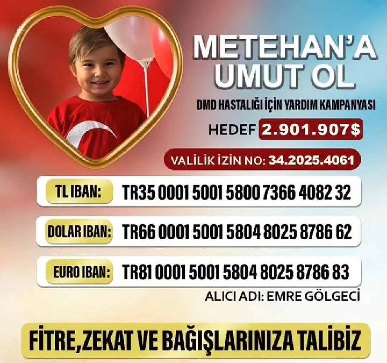DMD ölümcül kas hastası olan Oğlu Metehan Gölgeci'nin tedavisi için kampanya başlatan jandarma Astsubay Üstçavuş Emre Gölgeci, Elazığlılardan destek istedi. Jandarma Astsubay Üstçavuş Emre Gölgeci, DMD Ölümcül Kas hastası olan oğlu Metehan Gölgeci için destek bekliyor.