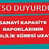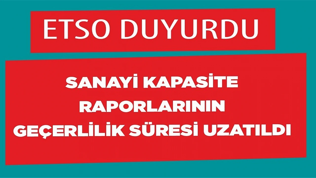 Buna göre, geçerlilik süresi Mart ve Nisan aylarında sona erecek olan sanayi kapasite raporlarının geçerlilik süreleri, 1 Mayıs 2020 tarihine kadar uzatıldı.