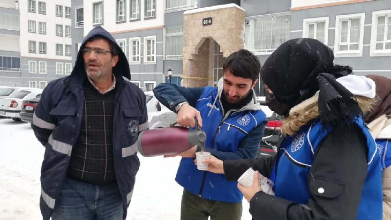 Elazığ Gençlik ve Spor İl Müdürlüğümüze bağlı Şehit Muammer Faruk Salgar Gençlik Merkezimiz Gönüllüleri ve Liderleri demledikleri çayları il genelinde kar küreme çalışmalarını sürdüren Personellere ikram ettiler. Soğuk ve Karlı geçen günlerde bizlerin ulaşımı konusunda ilk günden itibaren yoğun mesai harcayan Ekiplere, Gönüllülerimiz, ‘’ sizler bizim için çalışıyorken, biz de sizin için çay demledik ve ikram edelim istedik ‘’ diyerek hem teşekkür edip hem de içimizi ısıtan bu hareketle görev yapan personellerin takdirini kazandılar.