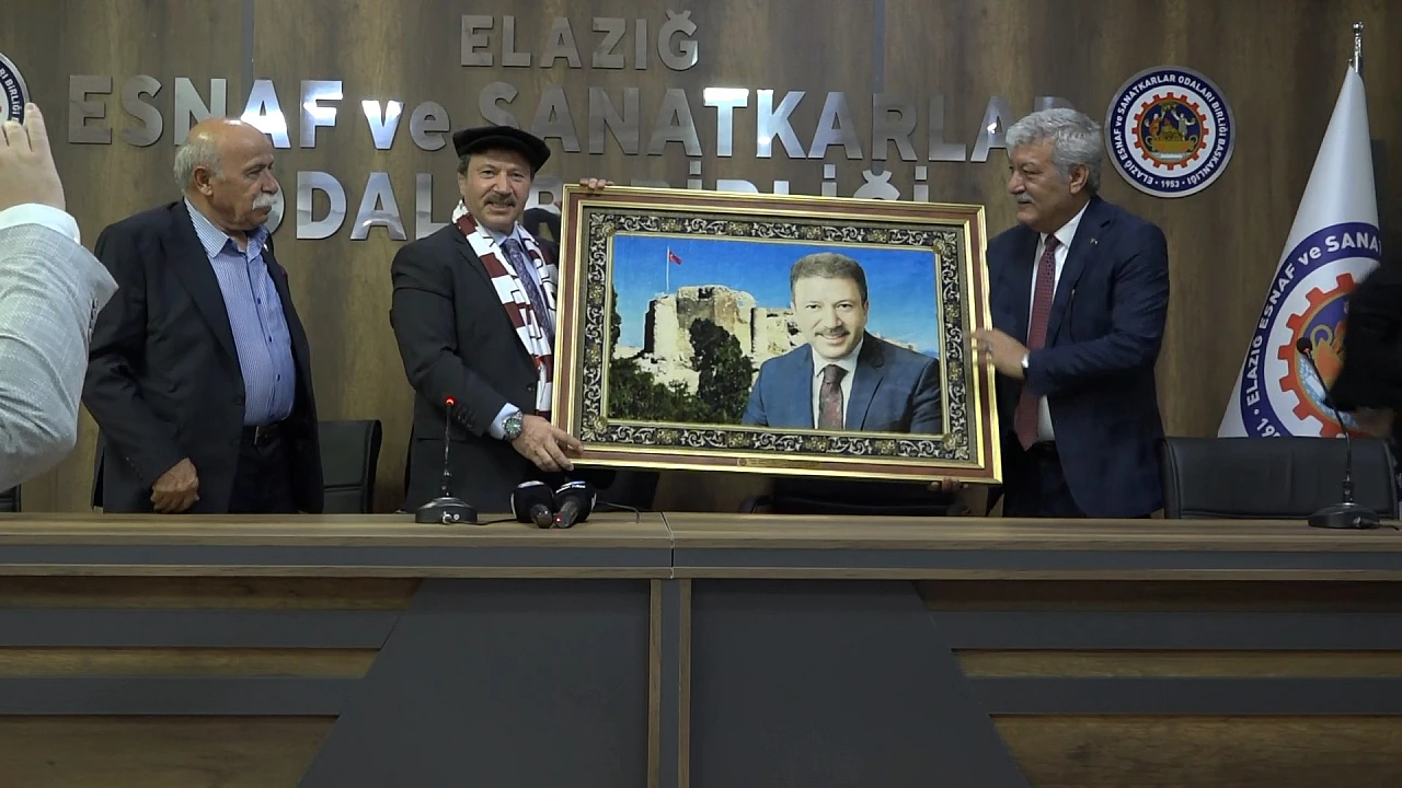 Genel başkan Yiğiner, davul klarnet ve alkışlar eşliğinde Havalimanı’ndan ayrılarak Elazığ Esnaf Odaları Birliği’ne geçti.