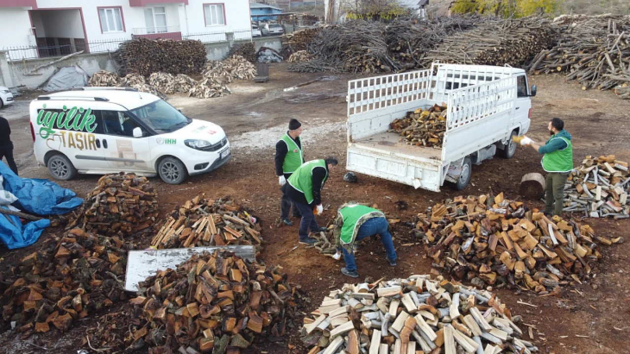 Kış aylarının başlayıp havaların soğuması ile birlikte temin edilen odunlar kamyonetlere yüklenerek ailelere ulaştırılmaya çalışılırken, hayırseverlerden de bu konuda destek istendi.