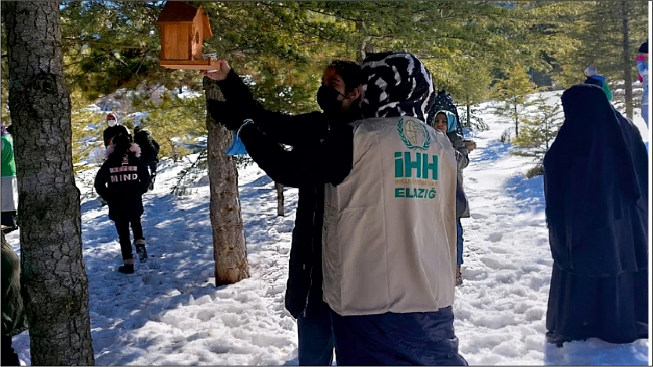 İHH İnsani Yardım Derneği Elazığ Şubesi Yetim Birimi 80 kişilik bir grupla anne ve çocuklarla birlikte Çakmaktepe Kent Ormanına giderek Orman Bölge Müdürlüğü'nden temin edilen 50 adet kuş yuvası ağaçlara astı. Gönüllüler beraberlerinde getirdikleri 25 kilo kuşyemi ve buğdayı da yuvalara ve karların üzerine serpti.