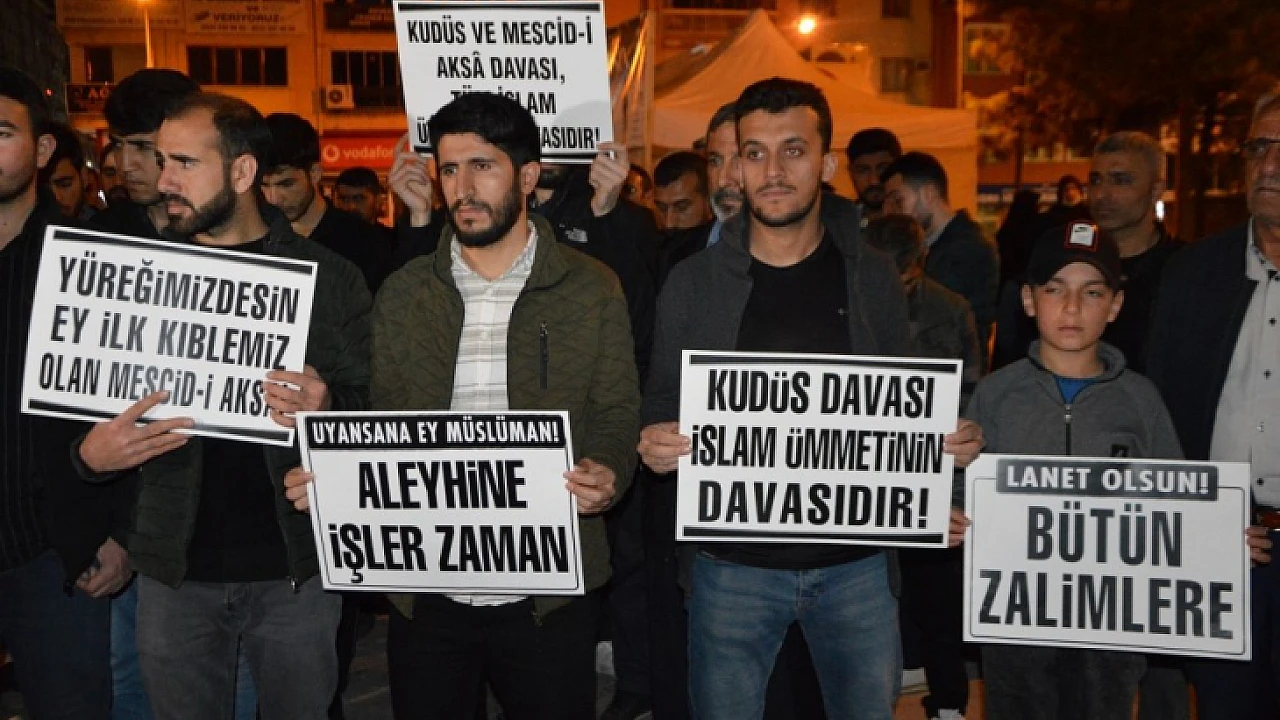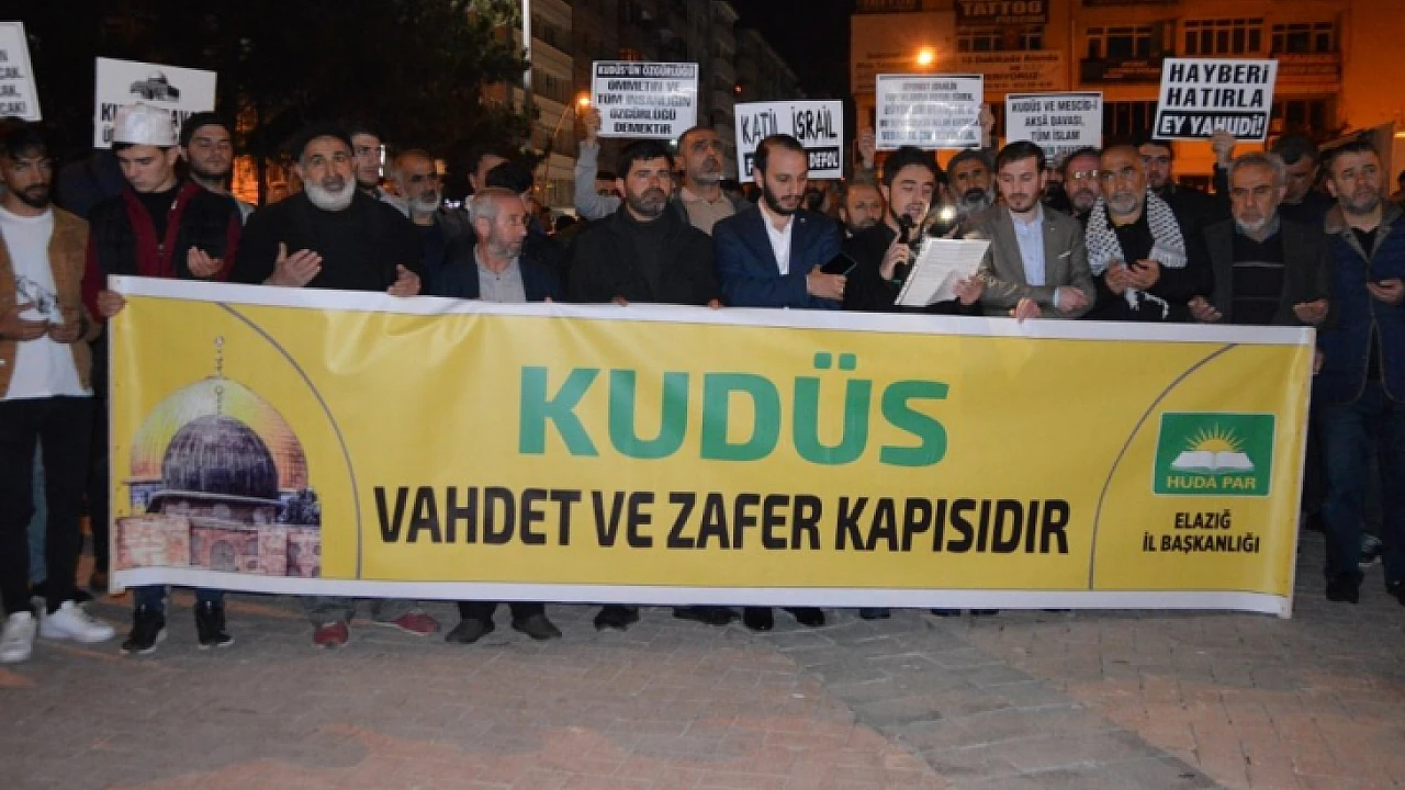 HÜDA PAR Elazığ İl Başkanlığı tarafından, Elazığ Öğretmenevi önünde toplanarak Mescid-i Aksa'ya yapılan saldırılarla ilgili açıklama yapıldı.
