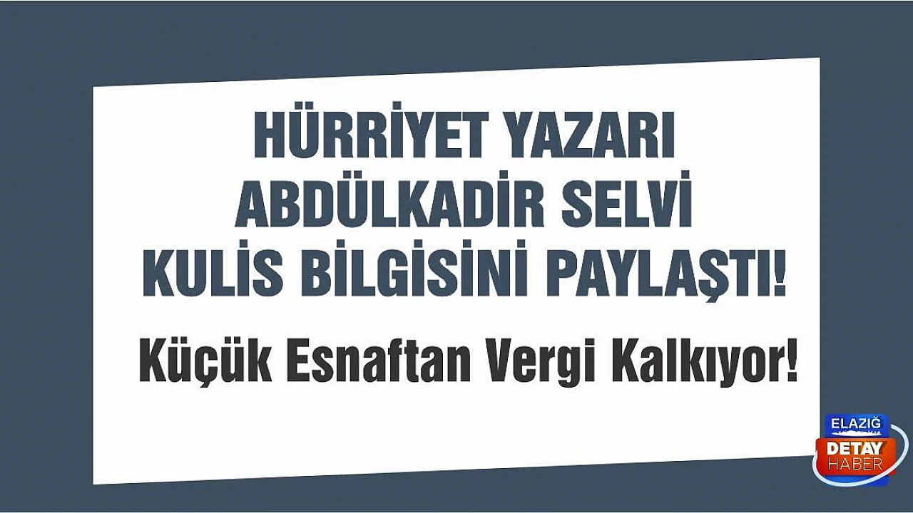 Küçük esnafı sevindirecek haber Hürriyet yazarı Abdülkadir Selvi'den geldi. 'Sorunlar tespit edildi, şimdi adım adım çözümler devreyle sokuluyor' diyen Selvi, yıllık cirosu 240 bin liranın altında olan esnaftan 2021 yılı için vergi alınmayacağını yazdı.