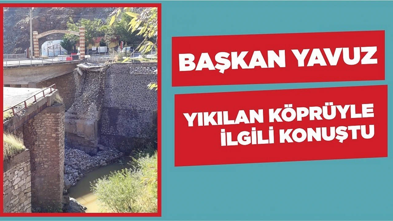 Maden ilçesindeki heyelan nedeniyle çok uzun yıllardır ayakta kalan ve ilçeye ulaşımda da kullanılan tarihi köprü bugün çökmüştü. Maden Belediye Başkanı Orhan Yavuz konuyla ilgili açıklama yaptı.