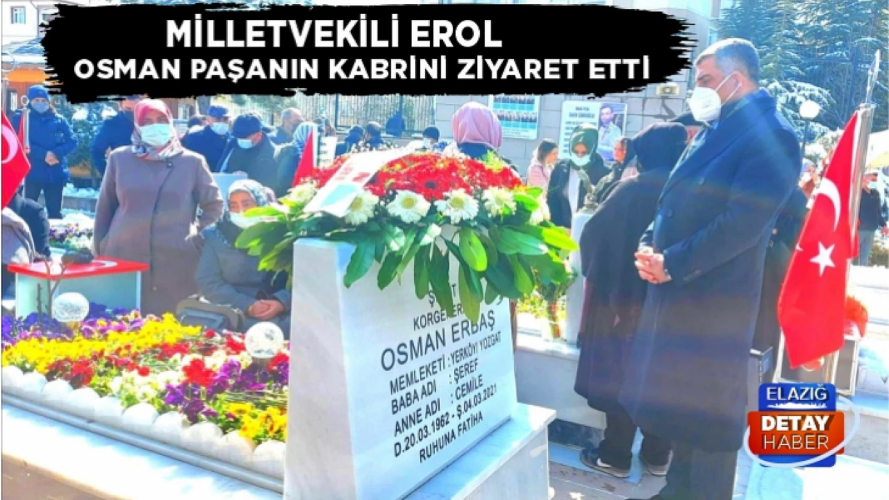 Erol, “8. Kolordu Komutanı Osman Erbaş ve beraberindeki askerler, 4 Mart 2021’de Tatvan’da düşen helikopter nedeni ile şehit olmuştu. Biz de Osman Paşanın şehit olmasının yıl dönümü dolayısıyla kabrine gelip ailesiyle birlikte dua okuduk. Şehitlerimizin emanetleri olan ailelerinin yanlarında olduğumuzu yineledik. Şehit Korgeneral Osman Erbaş nezdinde tüm şehitlerimize Allah’tan rahmet diliyoruz” dedi.