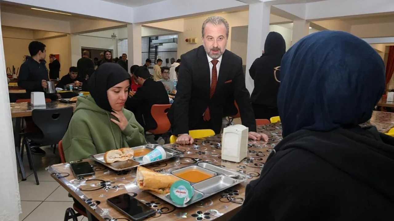 Elazığ İl Milli Eğitim Müdürü Beraat Şahin, Ahmet Kabaklı Fen Lisesi Pansiyonunda kalan öğrencilerle yemekte bir araya geldi.
