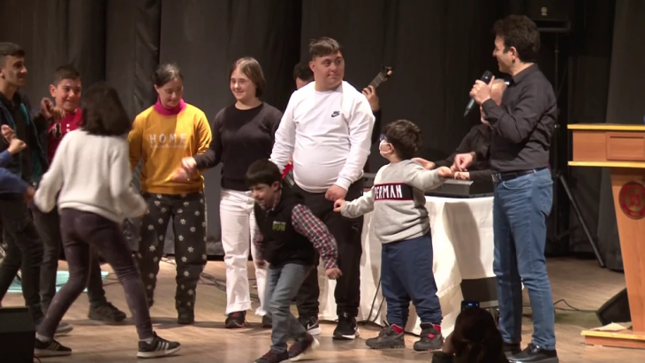 Down sendromlu özel çocuklar, Oğuz Aksaç’ın türküleri eşliğinde sahnede halay çekerek gönüllerince eğlendiler.