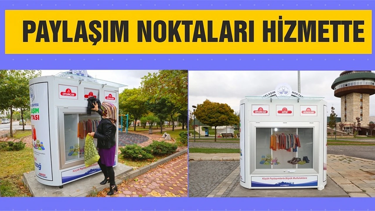 Hayırsever vatandaşların ihtiyaç fazlası eşyalarını paylaştırmayı kolaylaştıran proje doğrultusunda uygulamaya geçirilen paylaşım noktaları, Mustafa Paşa Mahallesi muhtarlığı yanı, Ahmet Aytar Meydanı, Kültür Park Mamurat’ül Aziz Salonu önü, Ataşehir muhtarlığı karşısı ve Cumhuriyet Mahallesi muhtarlığı karşısında hizmete sunuldu.