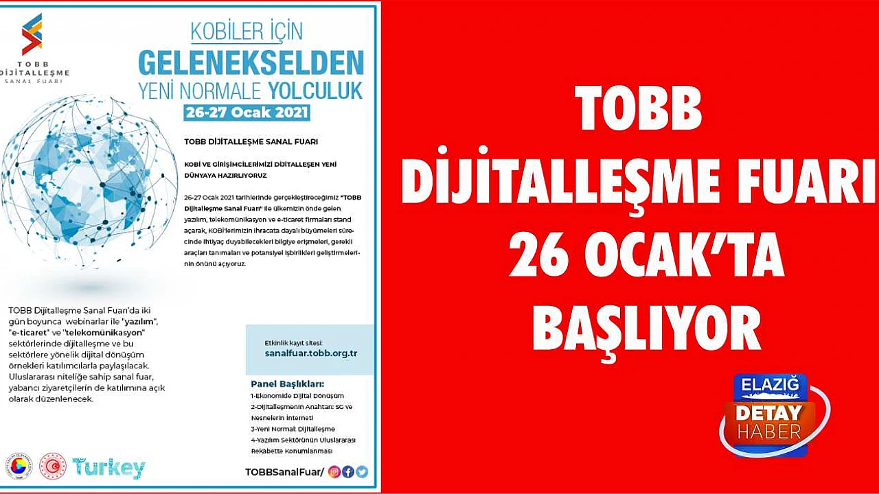 Türkiye Odalar ve Borsalar Birliği (TOBB) tarafından 26-27 Ocak 2021 tarihlerinde internet ortamında gerçekleştirilecek olan sanal fuar ile dijitalleşen yeni dünyaya uyum sağlanması hedefleniyor. Fuar kapsamında yazılım, telekomünikasyon ve e-ticaret sektöründen 100’e yakın şirket stant açacak. Hedef; KOBİ'lerin ihtiyaç duyabilecekleri bilgiye erişmeleri, gerekli araçları tanımaları ve potansiyel işbirliklerini geliştirmeleri.