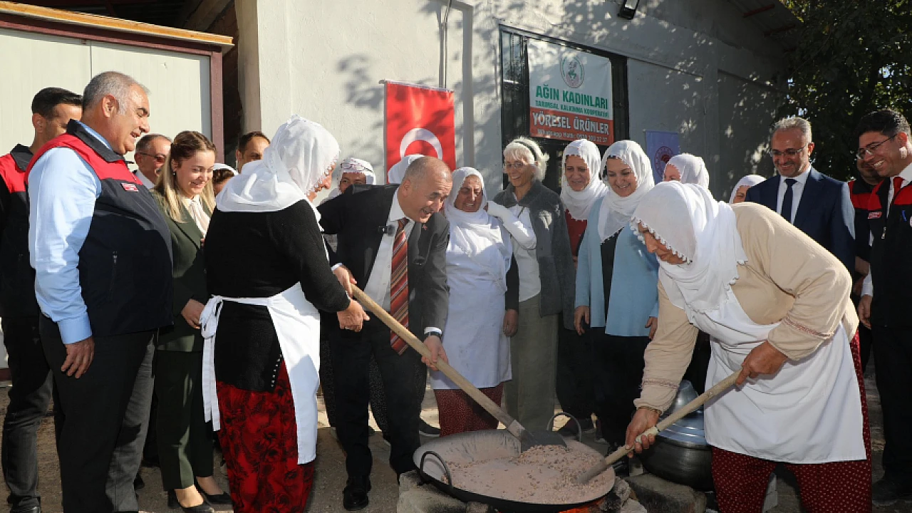 Elazığ valisi Numan Hatipoğlu, Türkiye'nin tescilli lezzeti Ağın leblebisinin yapımına katıldı, ardından ilçe halkı ile bir araya geldi.
