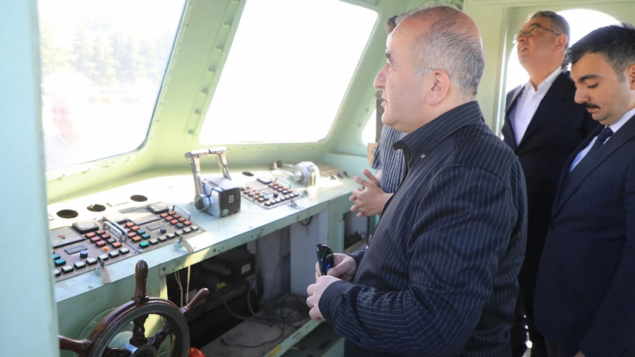 Elazığ Valisi Numan Hatipoğlu'da, Hazar Gölü'nde görev yapacak deniz temizleme aracında incelemelerde bulundu.