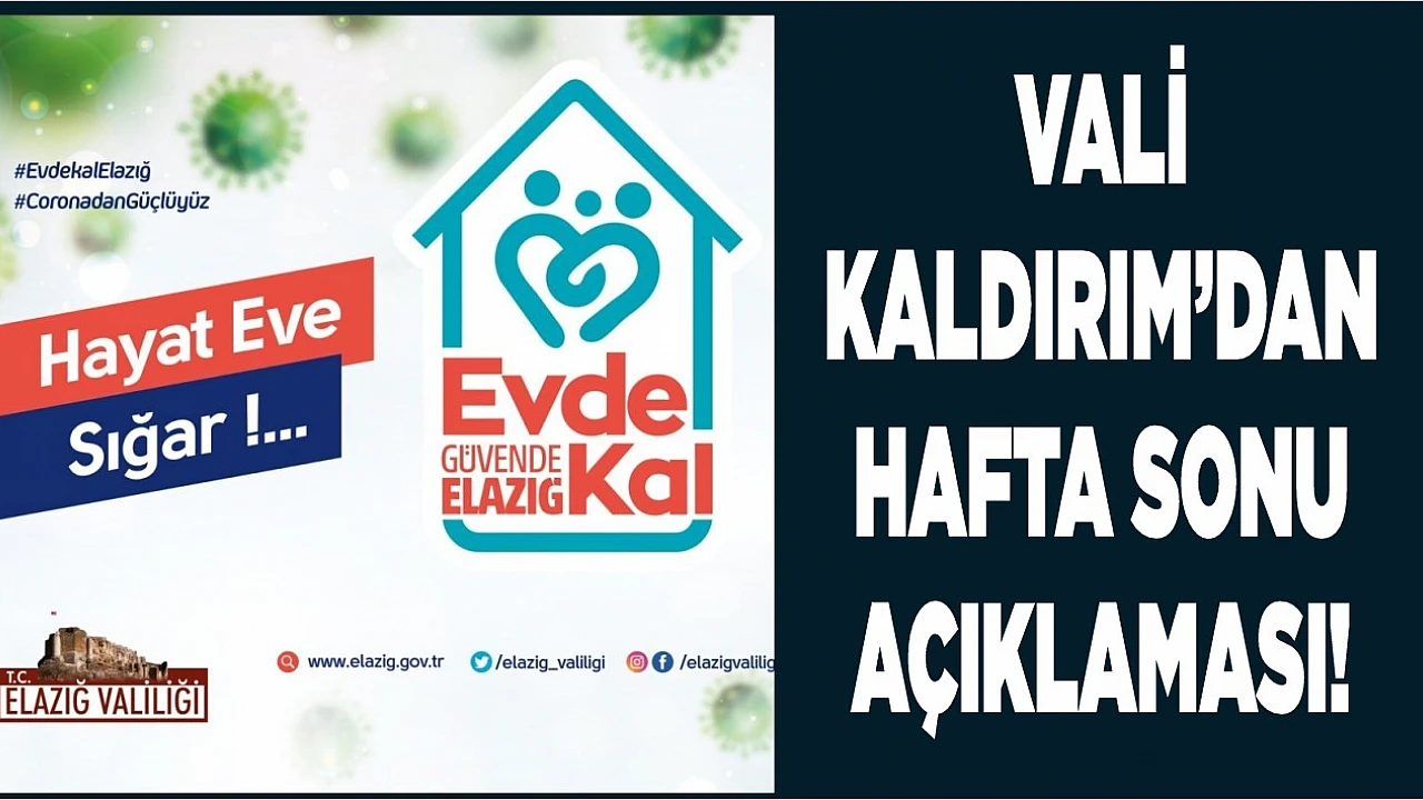 İçişleri Bakanlığı 30 büyükşehir ve Zonguldak için önümüzdeki hafta sonu koronavirüs salgınının yayılmasını önlemek için sokağa çıkma yasağının olacağını duyurmuştu. Elazığ Valisi Çetin Oktay Kaldırım da Elazığlı vatandaşlara sokağa çıkmamaları noktasında çağrıda bulundu. Vali Kaldırım, “Elâzığ’ımız hafta sonu da gönüllü olarak evde kalıyor, dışarı çıkmıyor” ifadelerine yer verdi.