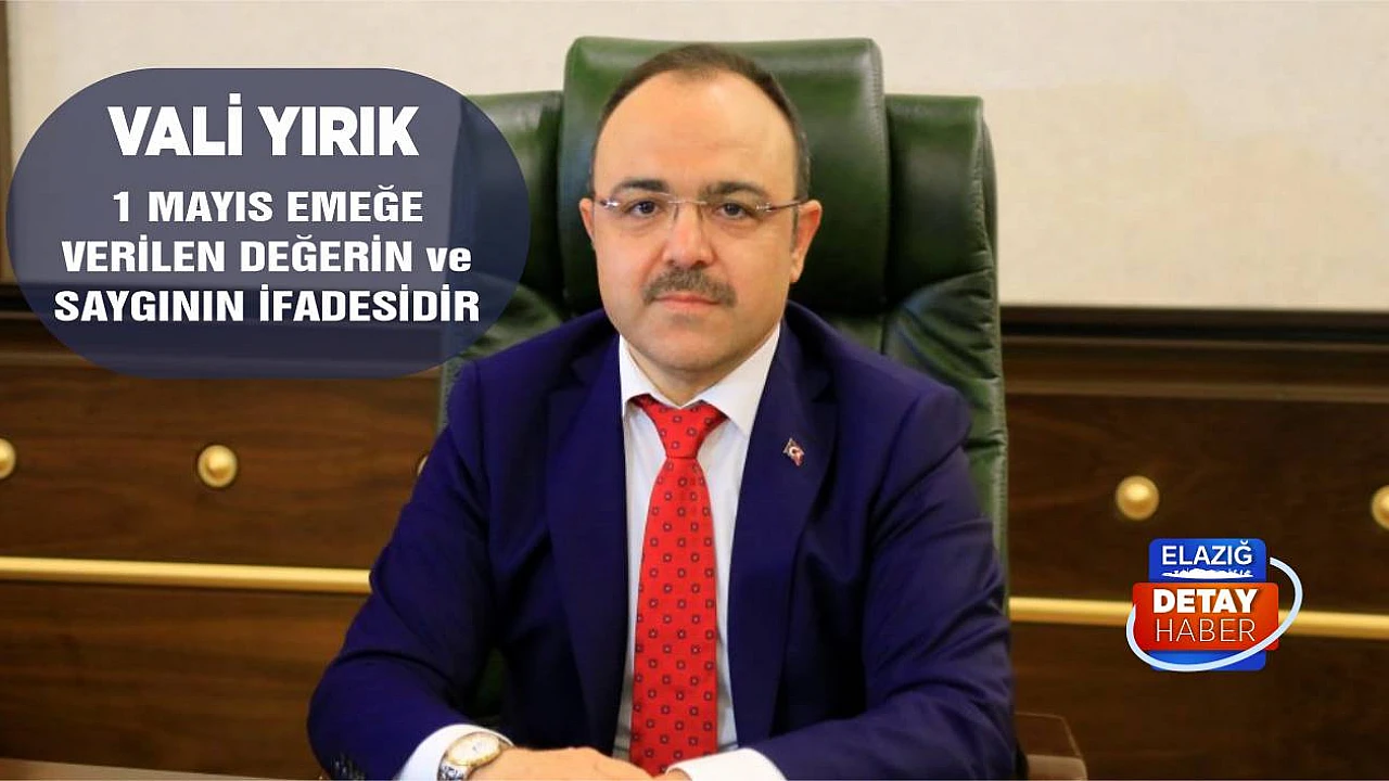 Elazığ Valisi Erkaya Yırık, 1 Mayıs Emek ve Dayanışma günü nedeniyle açıklamalarda bulundu. Vali Yırık, 'Emeğe verilen değerin göstergesidir' dedi.