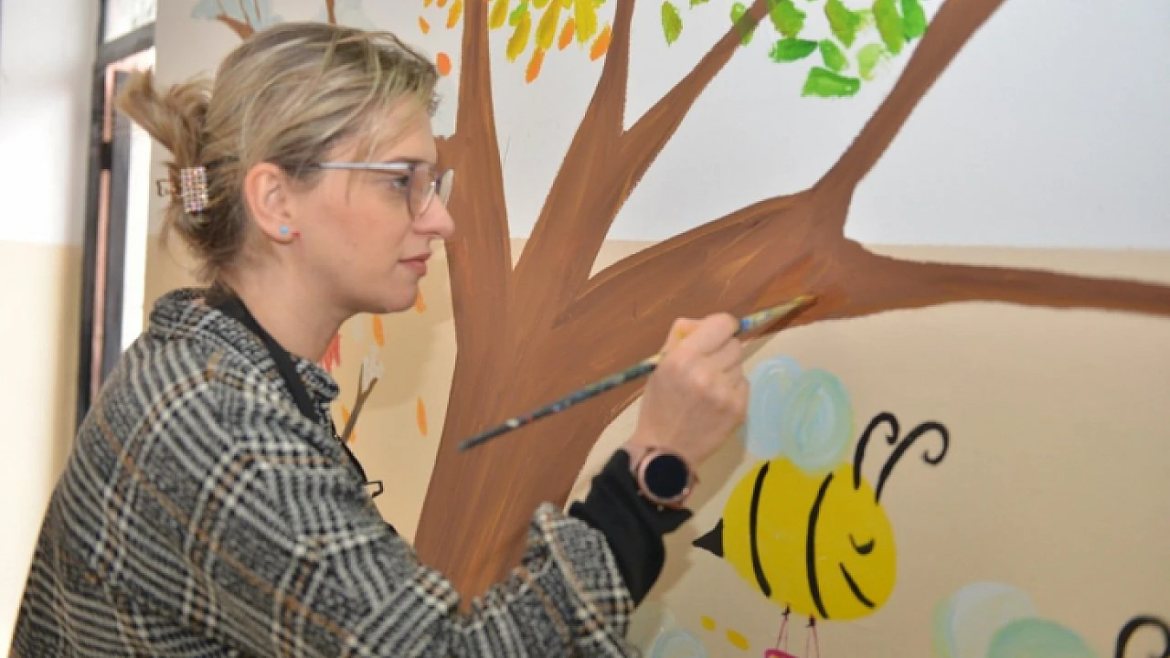 Bilim ve Sanat Merkezi Görsel Sanatlar Öğretmeni Yeliz Tuğal her hafta bir okulu ziyaret ederek okul duvarlarını çocuklar için eğitim içerikli resimlerle süslemeye devam ediyor.